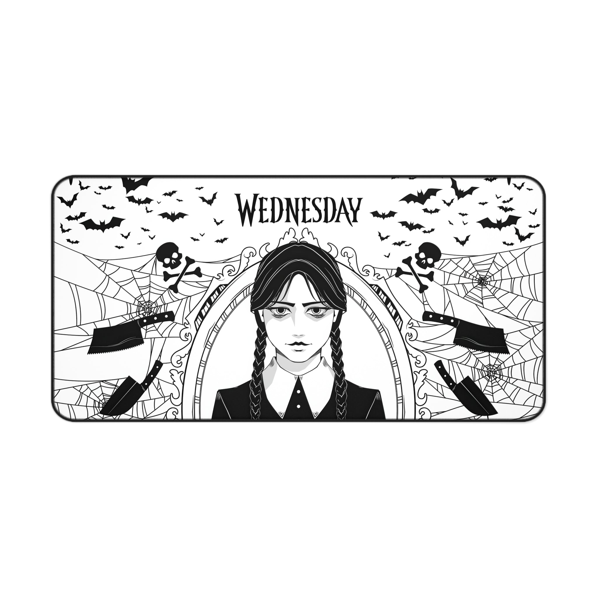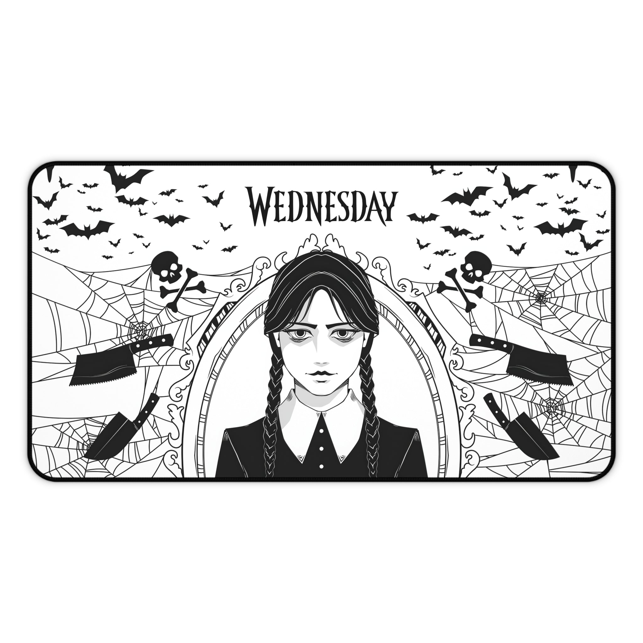 Wednesday Addams Mousepad, Monochrome Desk Mat I Mouse pad for Gamers, Gothic Desk Accessory, Kids Room Decor, XL Playmat Desk Protector