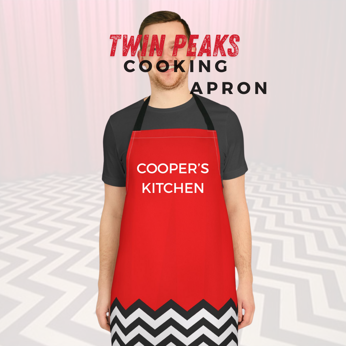 This Twin Peaks Black Lodge apron exudes a mysterious and eerie vibe, perfect for fans of the iconic TV show....