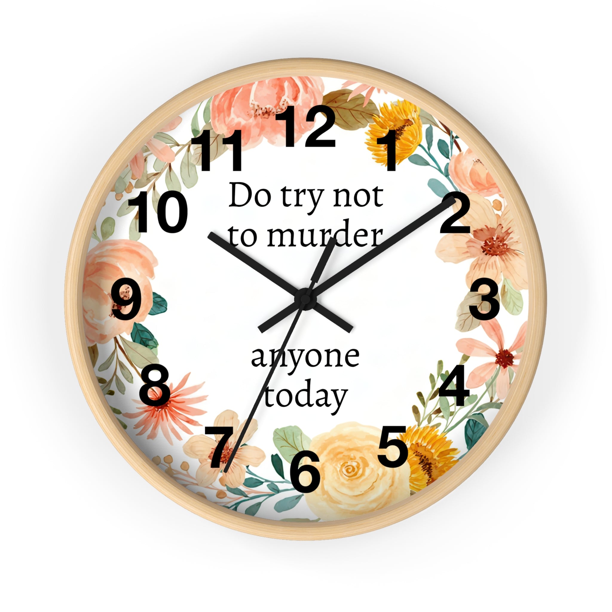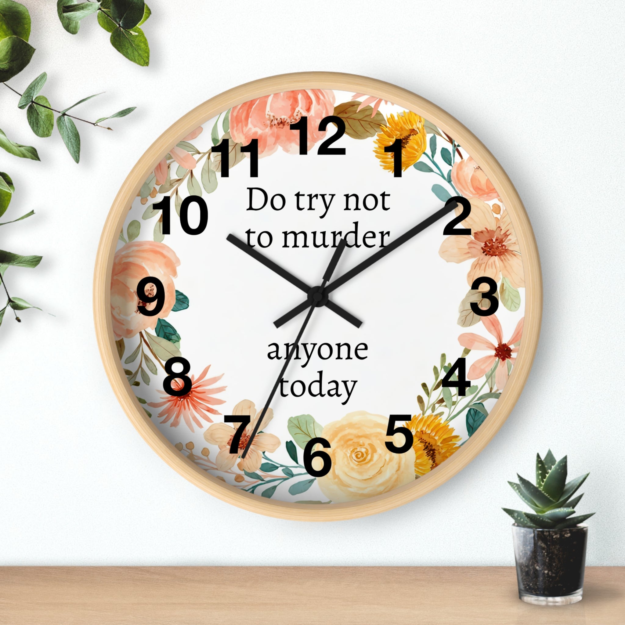 A quirky 'Do not murder anyone today' wall clock that adds a touch of humor to your space. Product features...