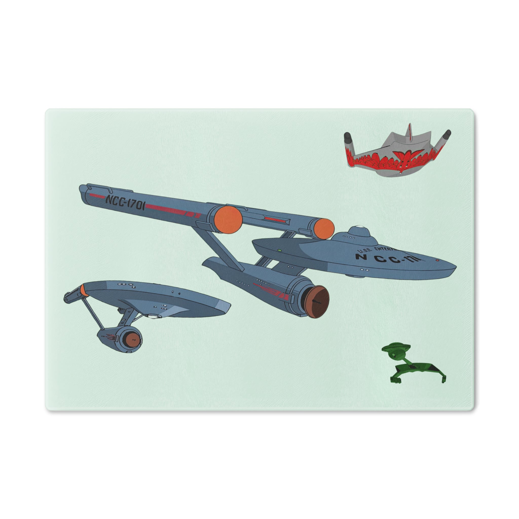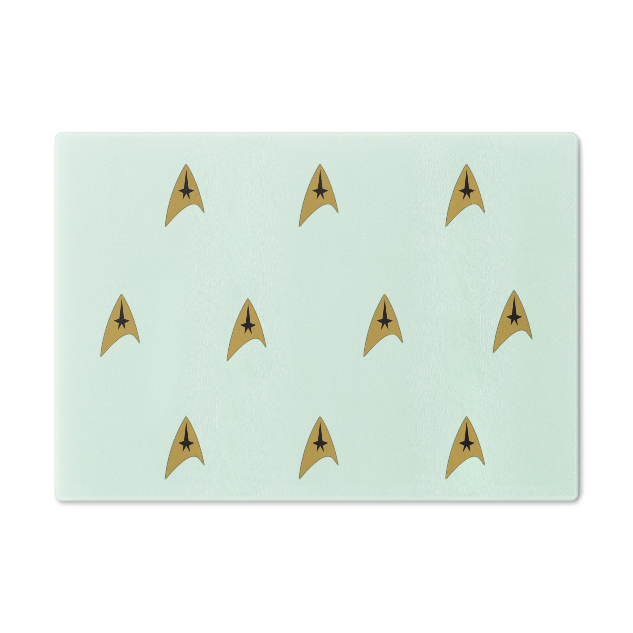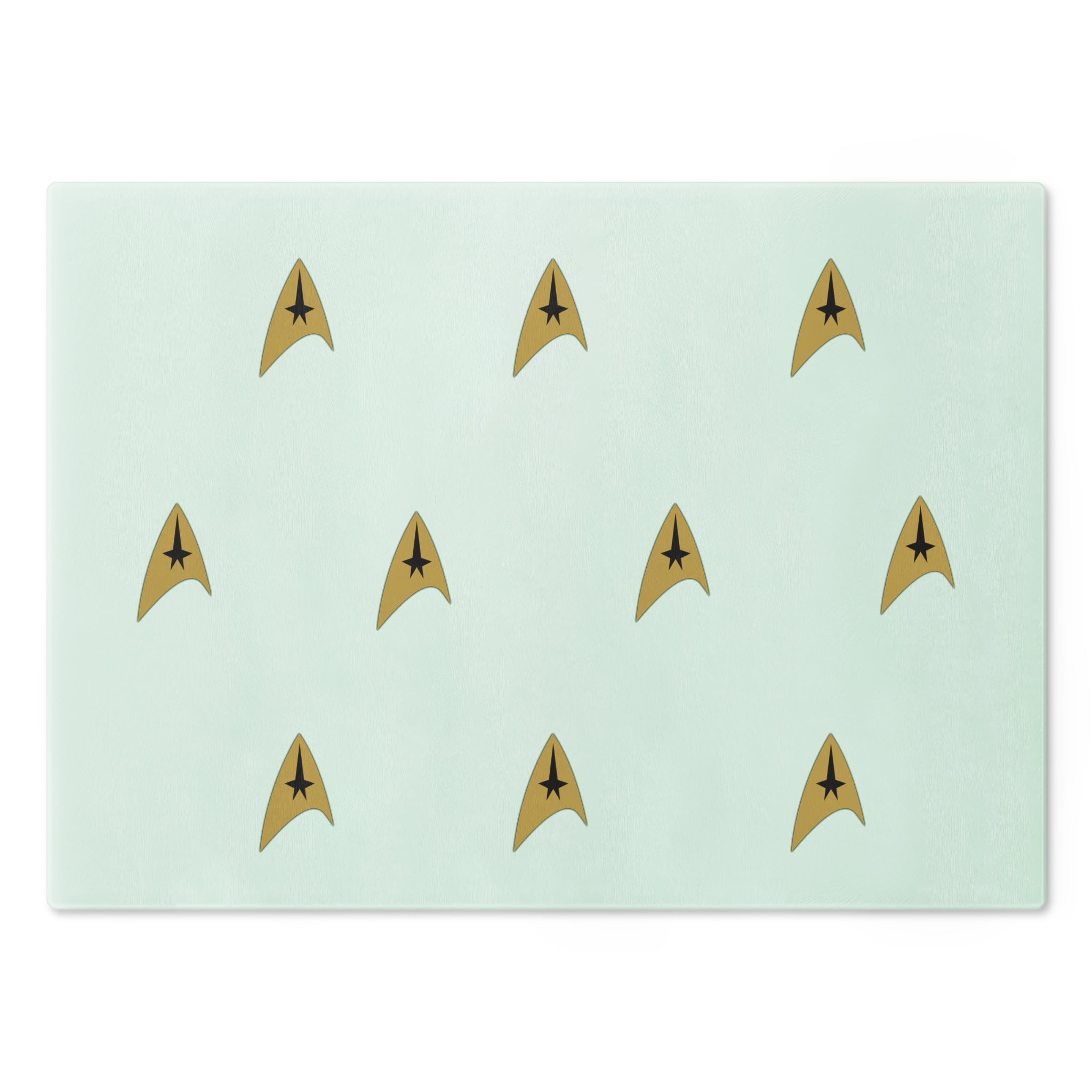 This Retro Trek Insignia glass cutting board brings a nostalgic vibe to your kitchen. Perfect for Star Trek fans, this...