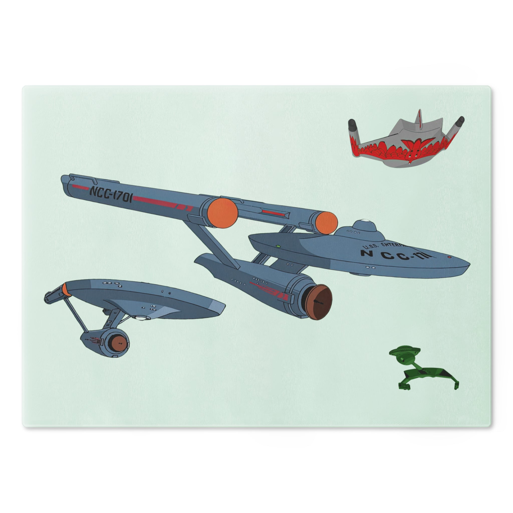 A Trek Original Series Cutting Board featuring a retro cartoon design, perfect for fans of the classic show. This cutting...