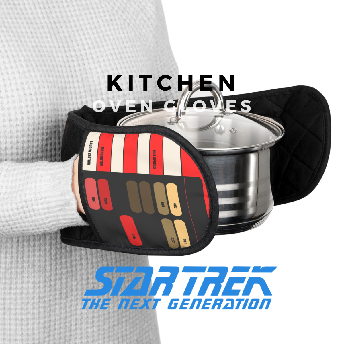 Add some LCARS to your kitchen with these heat-insulated oven mitts. Perfect for Star Trek fans who love to bake...