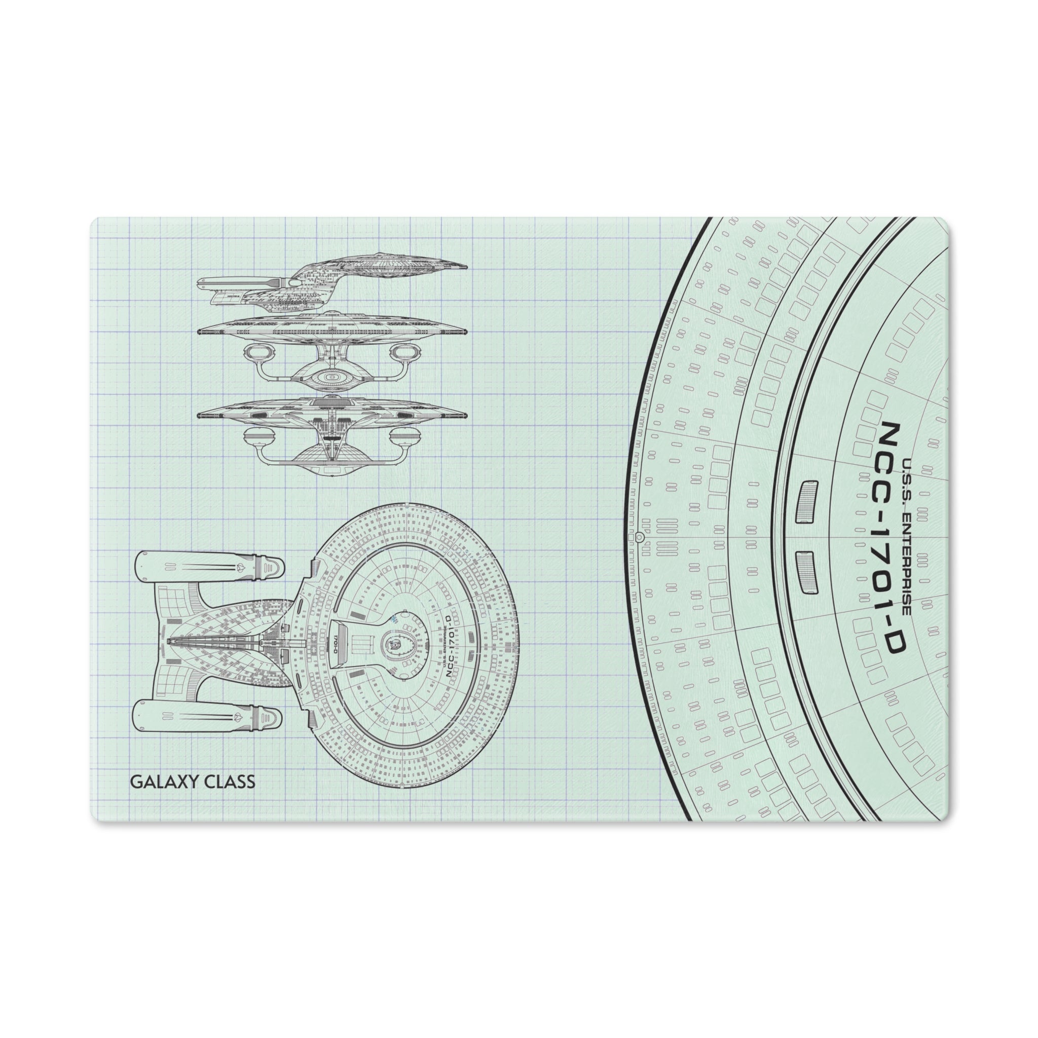 This USS Enterprise Blueprint glass cutting board is perfect for any Star Trek fan who loves to cook or host...