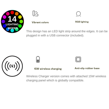 BUTTON PRESS TO MOVE BETWEEN 7 COLORS AND 14 MODES.