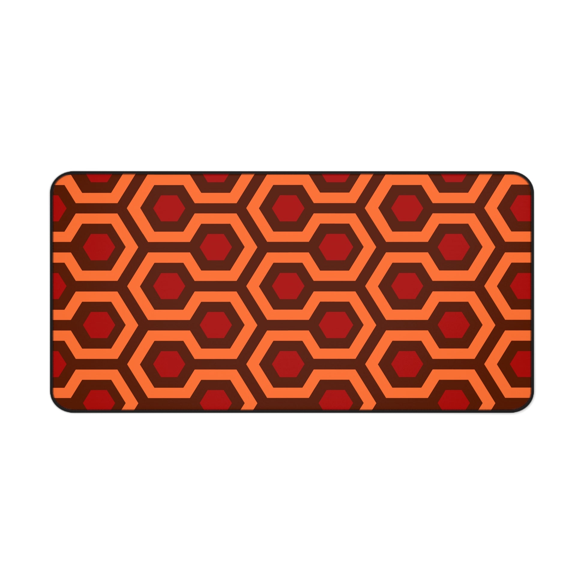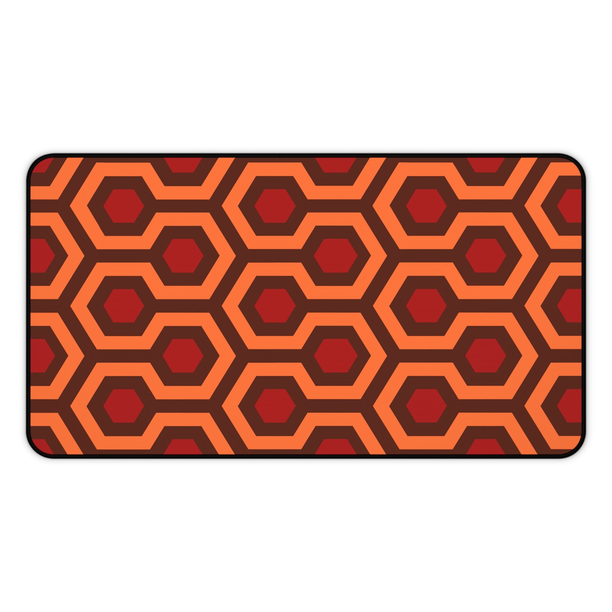 The Shining Mousepad, Overlook Hotel Carpet Desk Mat is a perfect addition to any workspace, giving a retro and eerie vibe. Ideal for horror movie lovers or fans of vintage designs. Product features - Non-slip bottom to prevent movement during use - Vibrant colors with crisp printing techniques - Hemmed edges for durability - Multifunctional use as a desk mat, writing, typing, or crafting surface Care instructions - Use warm water and dish soap to clean spots off your pad. It's not necessary to soak the whole pad. For hard-to-clean spots use a soft-bristled brush.