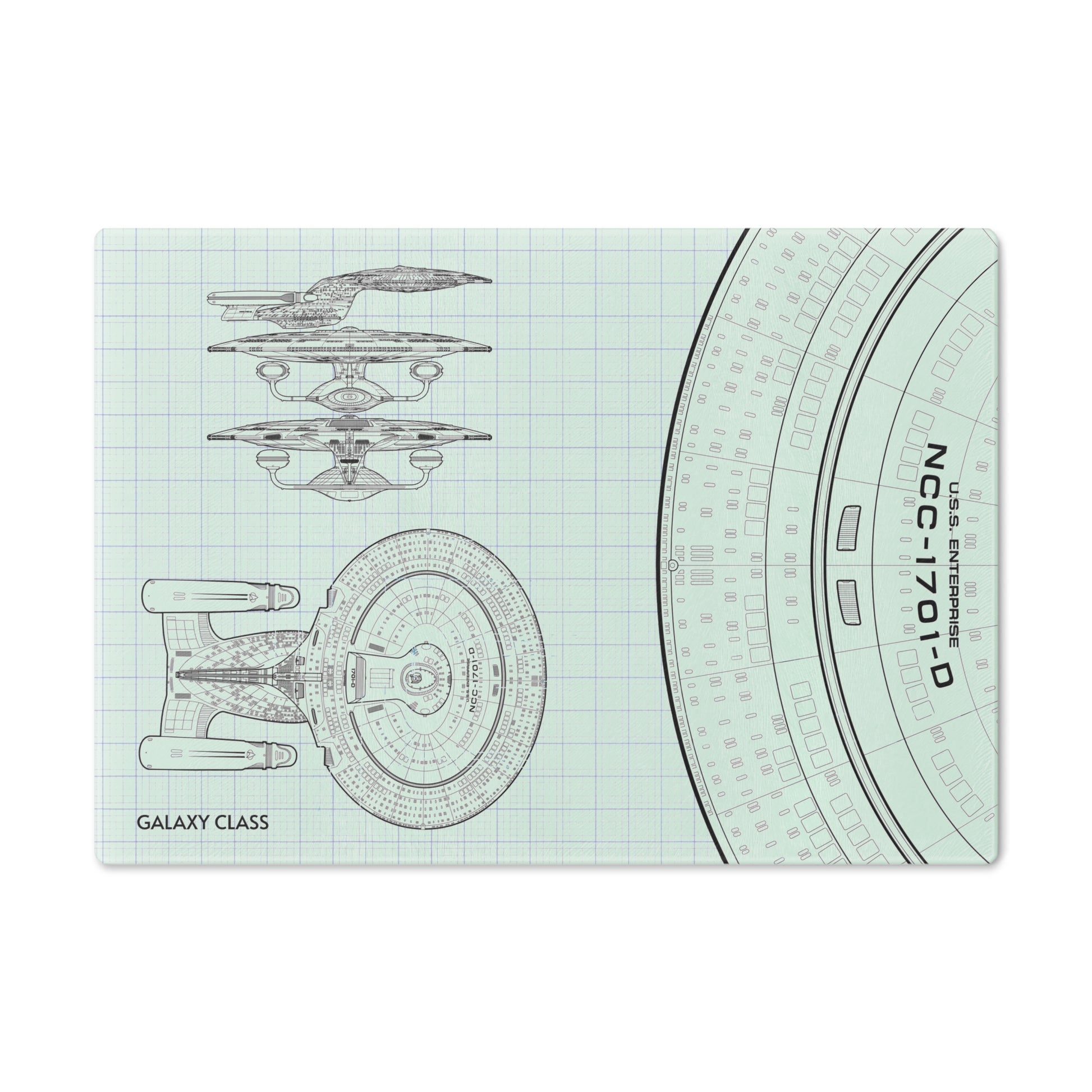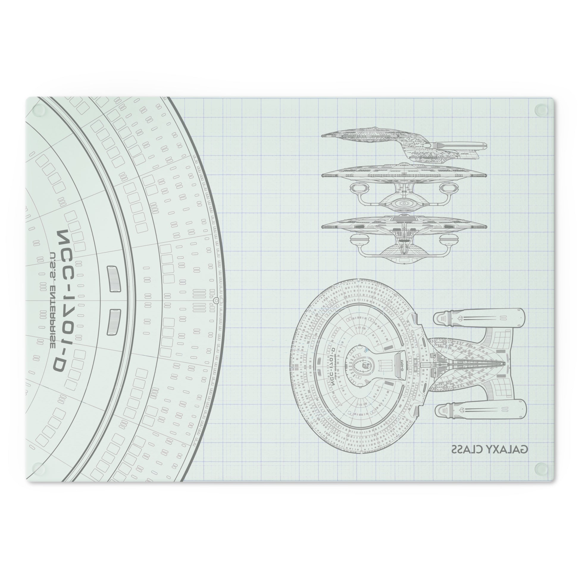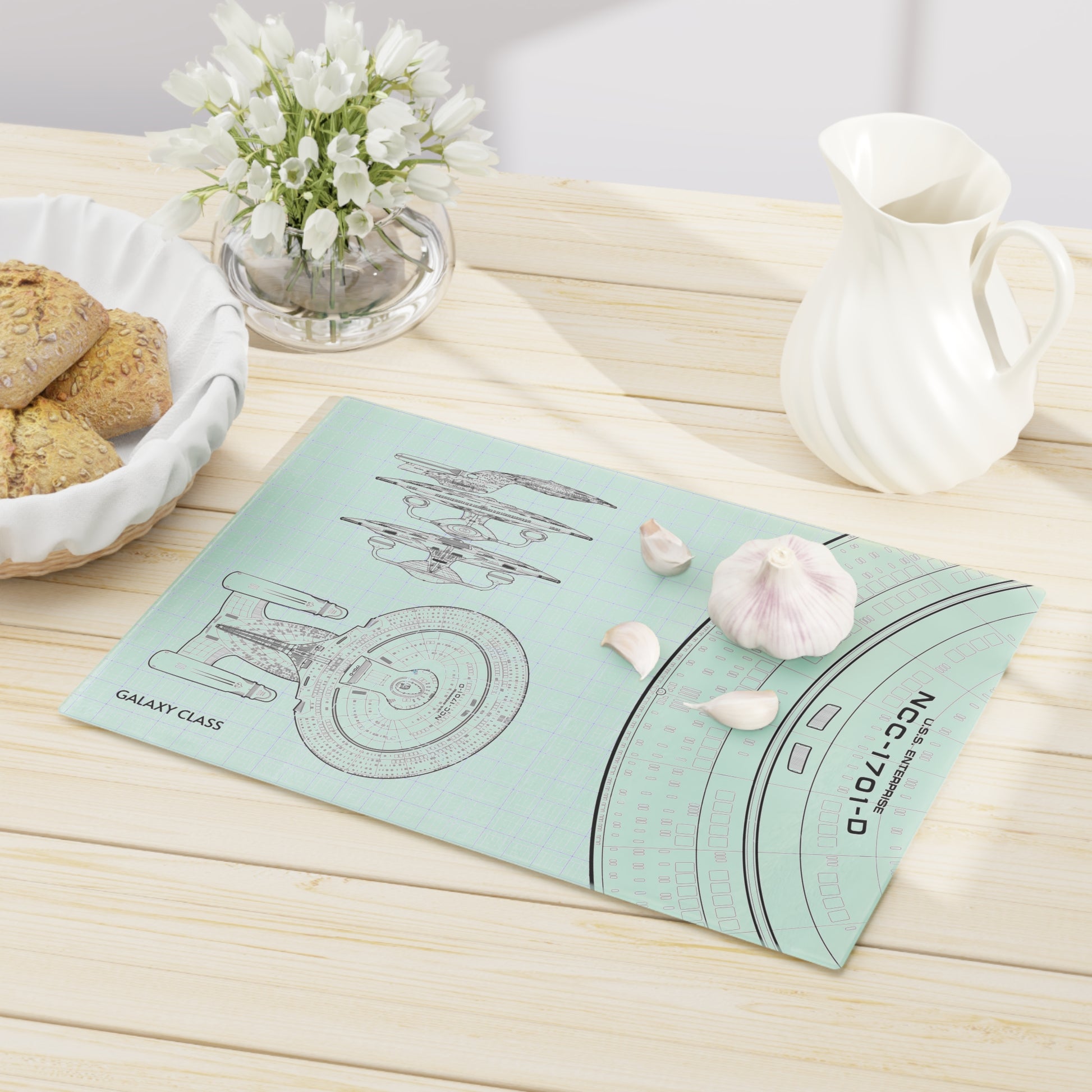 This USS Enterprise Blueprint glass cutting board is perfect for any Star Trek fan who loves to cook or host gatherings. The sleek design adds a touch of sci-fi charm to your kitchen and is a great conversation starter.